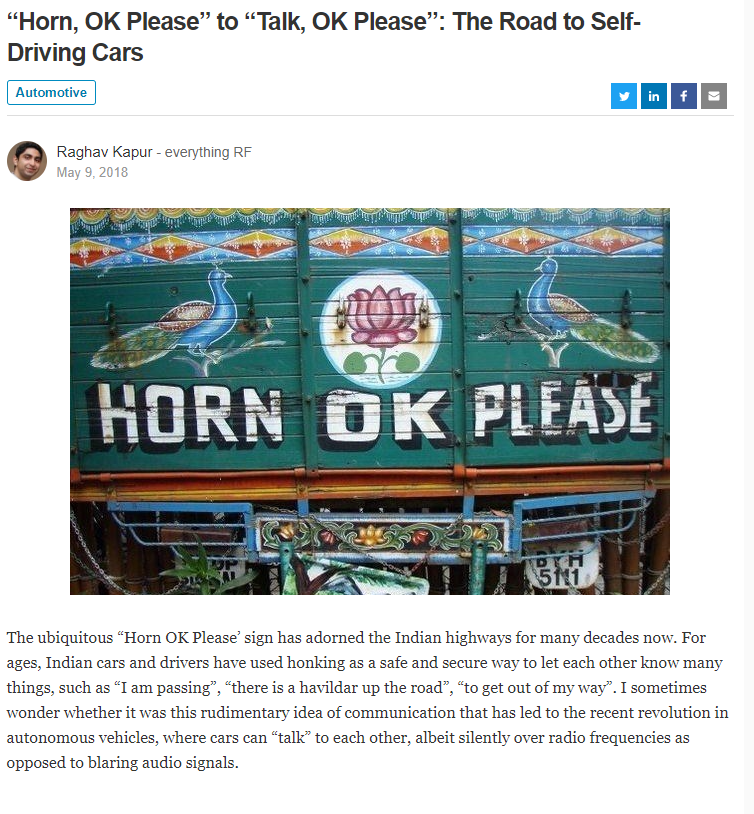 EverythingRF News! “Horn, OK Please” to “Talk, OK Please”: The Road to Self-Driving Cars.