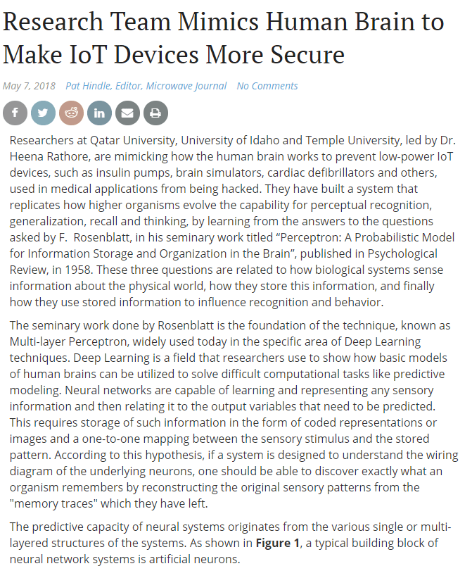 Microwave Journal News! “Research Team Mimics Human Brain to Make IoT Devices More Secure”
